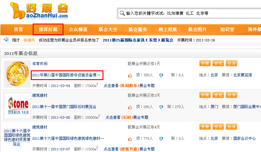 如果您的展覽會是中國最好的50個展覽會,我們將在推薦好展欄目列出,如下圖所示: