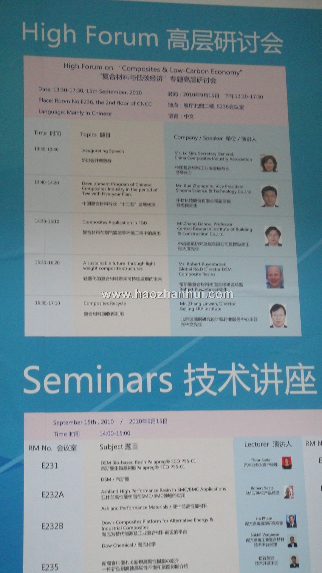 | 研討會/論壇 (共有2個) | “復合材料的發展與低碳經濟”專題高層研討會 CCExpo2010 技術講座 |