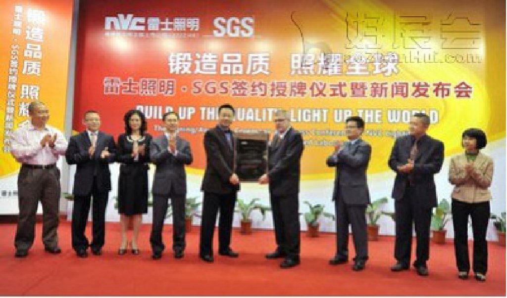 2011年12月7日,中國最大照明企業雷士照明(2222.HK)與全球最大、國際領先的檢驗、鑒定、測試和認證機構 – SGS 通標標準技術服務有限公司(下簡稱“SGS”),在廣東惠州雷士工業園隆重舉行“雷士照明·SGS 簽約授牌儀式暨新聞發布會”。雷士照明集團檢測中心正式獲得 SGS 授牌認可,是中國第一家獲得 SGS 認可的照明企業實驗室,同時也是獲其認可中規模最大的企業實驗室。該認可的獲得,為雷士照明的產品在海外銷售與市場擴張提供了強大的品質與認證保障,對于立志“創世界品牌”的雷士照明無疑是一大利好消息,同時將提升國內照明行業企業在國際市場上的綜合競爭力。