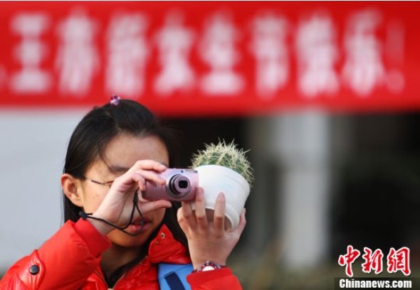 3月7日,清華大學的一位女生收到了自己的“女生節”禮物——仙人球