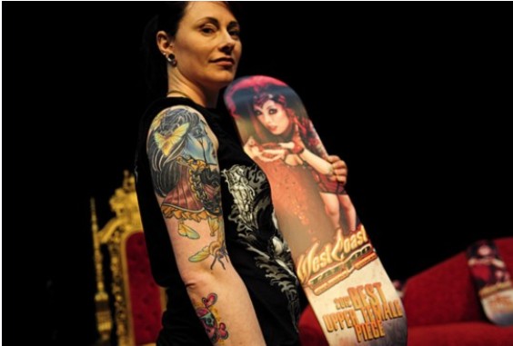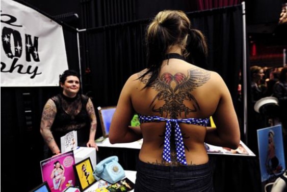 2012年4月29日,溫哥華舉行西海岸紋身藝術展,來自北美各地的幾百名紋身師將最新最勁爆的紋身技藝和西海岸風格刺青作品展現在眾人面前。(來源:環球網)