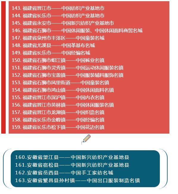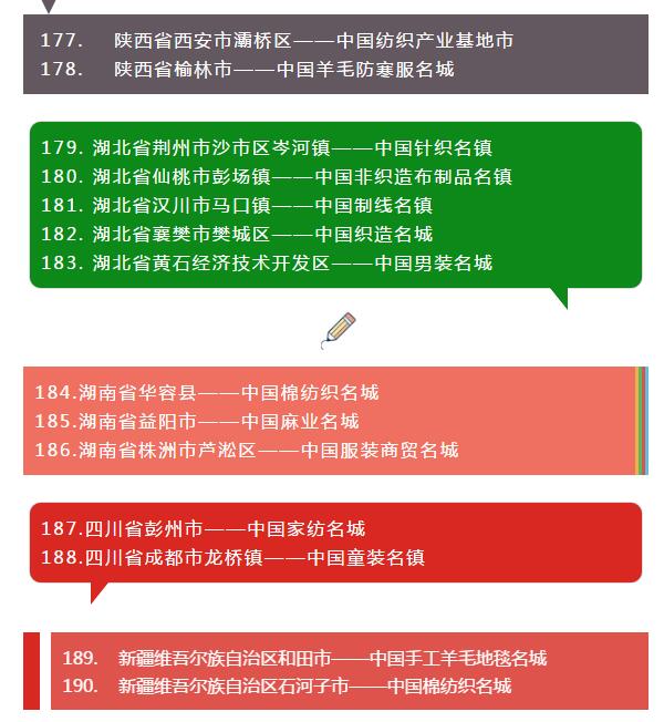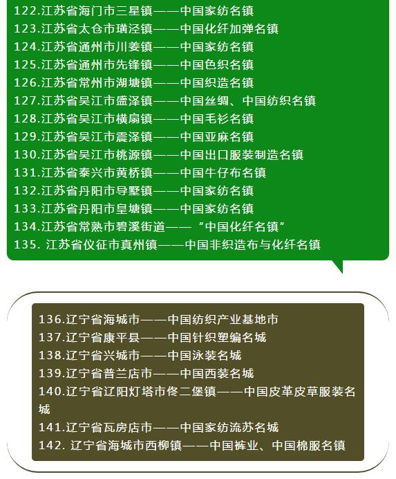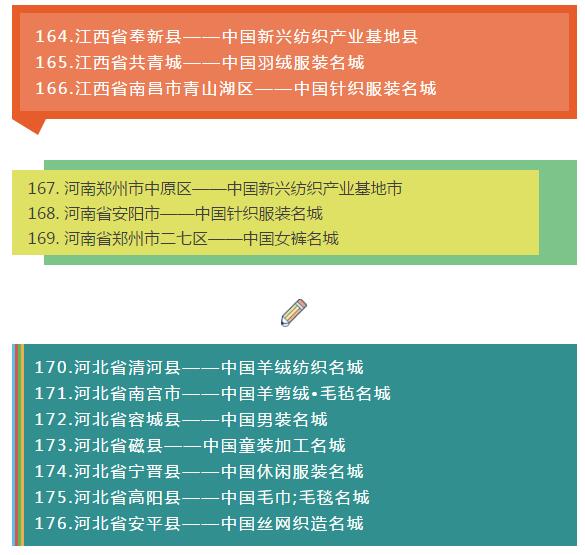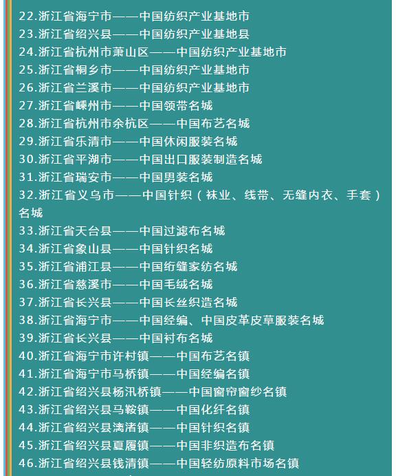 全國各省紡織服裝產業集群地區名單