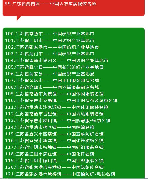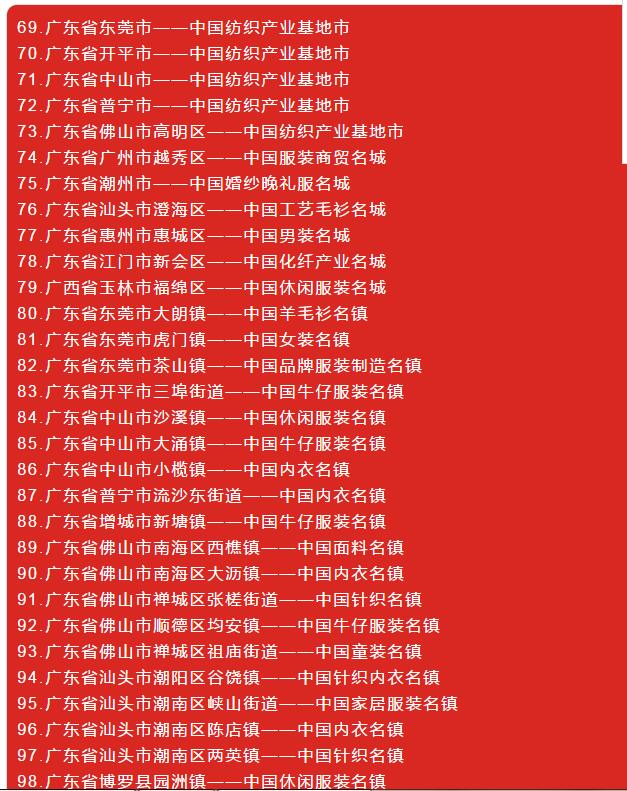 上百家的紡織服裝集群地區名單,一下了解行業信息