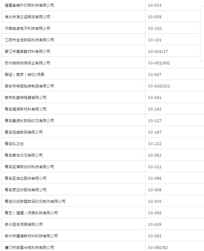2.印花材料 噴墨墨水、熱升華墨水、熱固油墨、水性油墨、轉印油墨、噴墨印花前后處理助劑、制版材料、印花膠漿、印花助劑、印花涂料、金蔥粉、印染助劑、樹脂、色漿、糊料粘合劑、硅膠、熱熔膠、燙金紙、燙畫紙及轉印紙、植絨粘合劑、植絨助劑等。