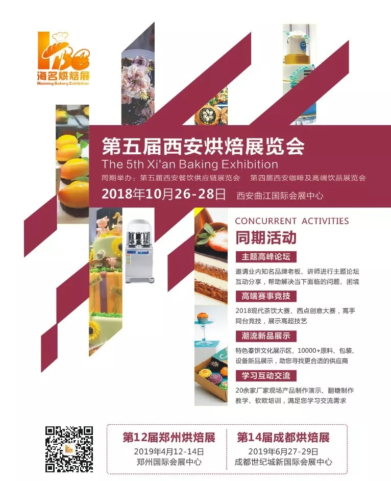 通過西安周邊地市的走訪,小編對陜西的烘焙市場有了更深入的了解,對接下來的招觀方向也更清晰了,為了這些烘焙餅店的期望和參展商的參展效果,接下來我們將繼續上路,拜訪陜西、山西、甘肅、寧夏等西北地區各地市的餅店、蛋糕店、咖啡、飲品、經銷商等專業買家。此次西安烘焙展不僅讓觀眾看到最新的烘焙產品、同期還將舉行多場論壇、比賽、產品制作等,匯聚行業人士同臺競技;同時滿足采購需求,也更能讓廠商通過展會了解前沿一線的西北烘焙市場和發展走向。我們秉承著讓客戶做生意更便捷,讓渠道和終端采購更省時,讓廣大消費群體食用更放心的信念!歡迎行業人士2018年10月26-28日相聚西安曲江國際會展中心參觀第五屆西安烘焙展。