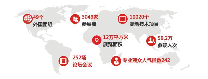 上一屆高交會,總面積達12萬平方米,全國38個省、自治區、直轄市、計劃單列市(含香港、澳門、臺灣、新疆生產建設兵團)組團、27所知名高校、來自46個國家及歐盟在內的49個外國團組參加了本屆高交會,其中27個“一帶一路”沿線國家參展。共計3049家展商,展示高新技術項目達10020項。來自102個國家和地區的59.2萬人次觀眾,論壇會議總場次超過252場。高交會通過各種渠道組織邀請到了眾多單位、機構、團組到場,其中包括來自海內外的近59.2萬人次專業觀眾參觀,平均每天每個展位共接待了242位專業觀眾,平均每天每個展位共接待了63位有意向或有實際采購行為的采購商。