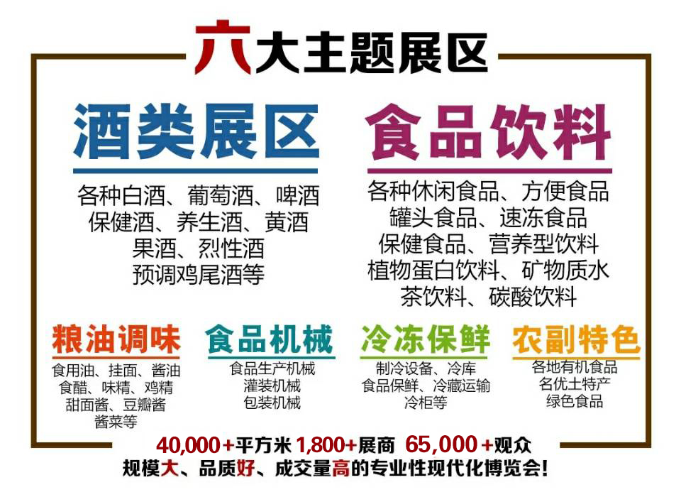 本次展會(huì)預(yù)設(shè)八個(gè)館,共計(jì)2000多個(gè)展位,將設(shè)立食品、酒類、飲料、食品機(jī)械、調(diào)味品等專業(yè)性主題展區(qū),展區(qū)特色鮮明,引領(lǐng)食品糖酒發(fā)展新方向。展會(huì)的展品水平、品種、規(guī)格的覆蓋面均創(chuàng)新高。以專業(yè)觀眾為重點(diǎn),提升會(huì)展專業(yè)化水平,本屆糖酒會(huì)組委會(huì)把專業(yè)觀眾的邀請(qǐng)組織工作放到了位并制定了詳細(xì)的專業(yè)觀眾的組織和宣傳推廣工作:一方面通過(guò)行業(yè)網(wǎng)絡(luò)媒體宣傳邀請(qǐng)專業(yè)觀眾參會(huì),把專業(yè)觀眾的組織工作深入到各地市的每一個(gè)縣區(qū);另一方面中貿(mào)集團(tuán)掌握百萬(wàn)條專業(yè)買家數(shù)據(jù),覆蓋各類參展企業(yè)對(duì)于代理商流通商的需求方向,派發(fā)50萬(wàn)張參觀劵和20萬(wàn)份請(qǐng)柬以及10萬(wàn)份《展前預(yù)覽》直接邀請(qǐng)國(guó)內(nèi)商場(chǎng)超市、批發(fā)市場(chǎng)、餐飲酒店、賓館和相關(guān)政府部門、企業(yè)、代理商前來(lái)參觀、洽談、訂貨。同時(shí)投入巨資為到會(huì)觀眾免費(fèi)提供酒店住宿、大巴車接送等服務(wù),傾力打造中國(guó)效果最好的糖酒類食品展。為國(guó)內(nèi)外食品行業(yè)企業(yè)開發(fā)維護(hù)市場(chǎng)做好服務(wù),為糖酒類、食品經(jīng)銷商的選品和學(xué)習(xí)交流搭好橋梁,為中國(guó)糖酒食品行業(yè)發(fā)展再添新能量。另外以強(qiáng)勢(shì)媒體為依托,全方位多角度宣傳,展會(huì)舉辦效果如何,宣傳至關(guān)重要。媒體支持專業(yè)會(huì)展公司辦展,其優(yōu)勢(shì)毋庸置疑。本屆全國(guó)食品博覽會(huì)暨濟(jì)南糖酒會(huì)也將會(huì)注重互聯(lián)網(wǎng)媒體的宣傳,既利用自身展會(huì)官網(wǎng)作宣傳,同時(shí),借助齊魯晚報(bào)、山東商報(bào)、山東電視臺(tái)、濟(jì)南電視臺(tái)以及出租車、公交車車體和電視屏、樓宇等連續(xù)發(fā)布廣告,全面為2019第13屆全國(guó)食品博覽會(huì)暨濟(jì)南糖酒會(huì)升級(jí)造勢(shì)。