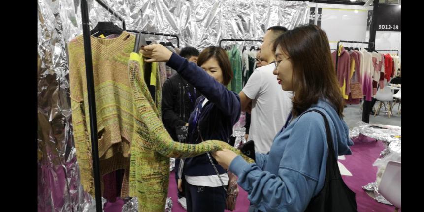 中國女裝領軍企業歌力思時尚集團供應鏈負責人到訪針織力量展位,并驚喜地發現數家具有合作潛力的毛衫企業!(附下圖)