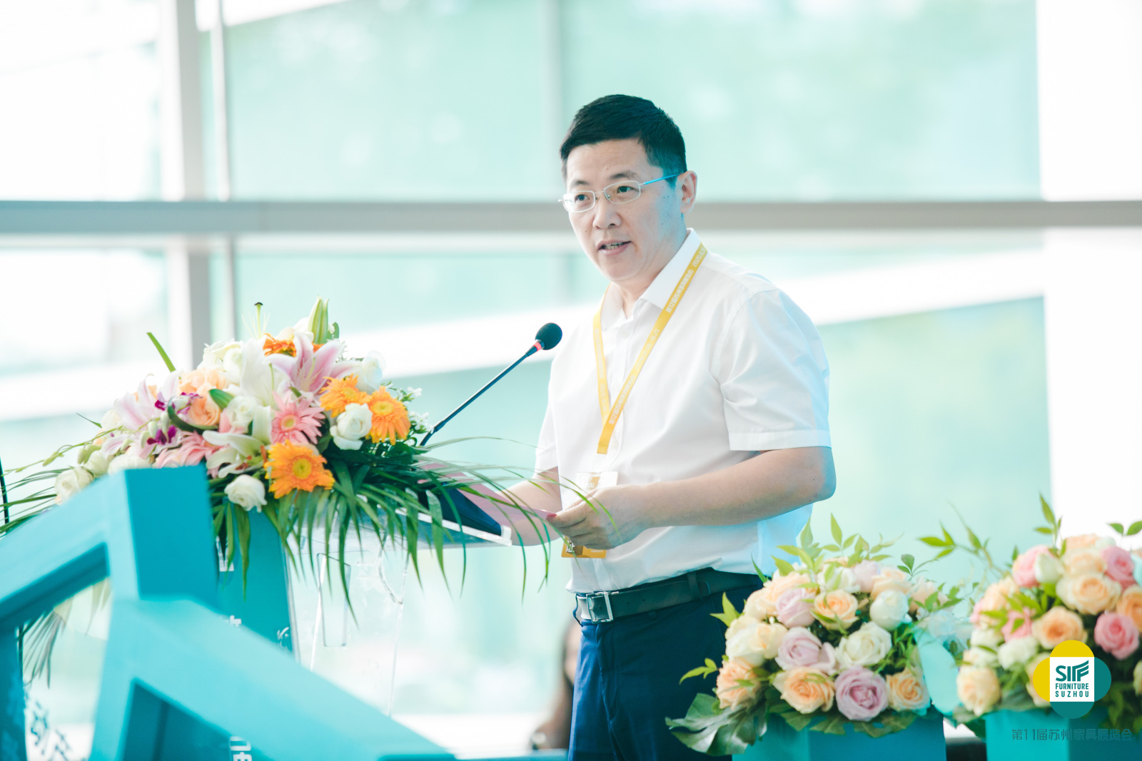 蘇州市相城區(qū)區(qū)委常委、元和街道黨工委書(shū)記尤建豐先生發(fā)表講話。首先尤書(shū)記表達(dá)了對(duì)蘇州家具展的祝賀、對(duì)各界人士蒞臨蘇州表示歡迎。他表示蘇州家具展與蠡口國(guó)際家具城是蘇州家具產(chǎn)業(yè)的兩張名片,蘇州家具展歷經(jīng)十一年,已經(jīng)成長(zhǎng)為全國(guó)范圍內(nèi)的重要家具展會(huì);蠡口國(guó)際家具城作為中國(guó)家具東部商貿(mào)之都,是中國(guó)家具重要的貿(mào)易集散地,十多年來(lái),二者息息相關(guān),展會(huì)與市場(chǎng)相互促進(jìn),相互成就,成為了華東家具的一段佳話,最后尤書(shū)記也希望大家能在蘇州家具展現(xiàn)場(chǎng)參展有效,觀展有益,互惠互利,共同發(fā)展。