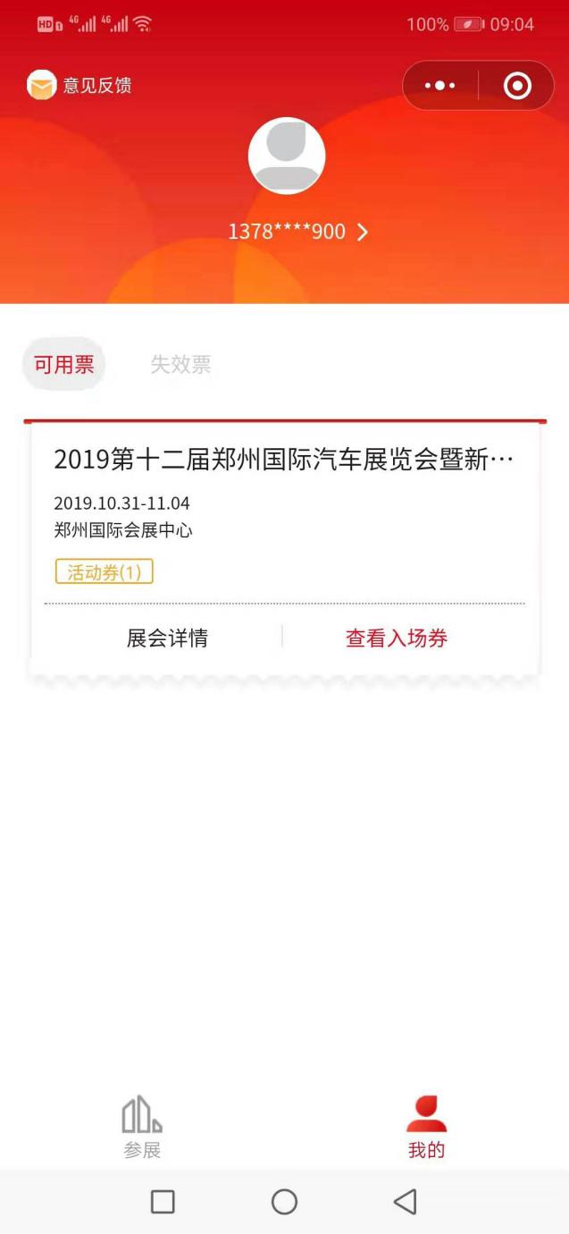 2、輸入手機(jī)號(hào)和驗(yàn)證碼點(diǎn)擊登錄,即可領(lǐng)取到免費(fèi)的鄭州國(guó)際車(chē)展門(mén)票;點(diǎn)擊“查看入場(chǎng)券”,即為車(chē)展電子門(mén)票,展期掃碼入場(chǎng)即可。