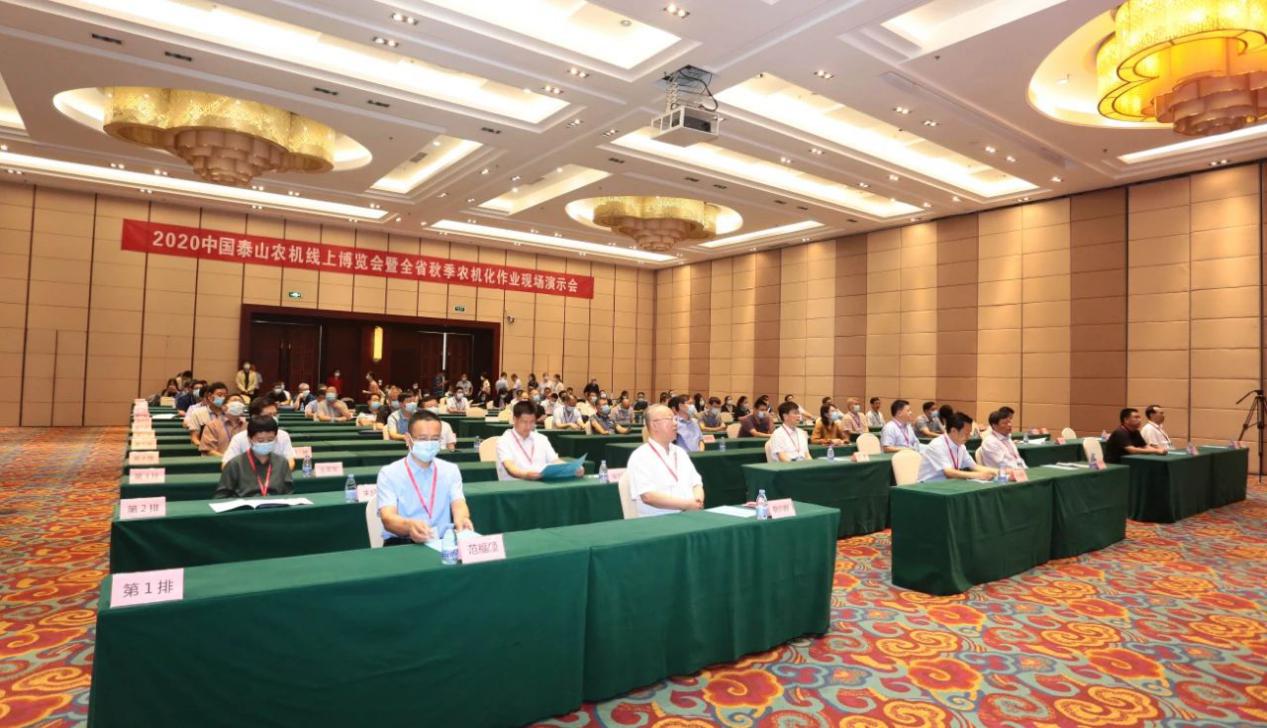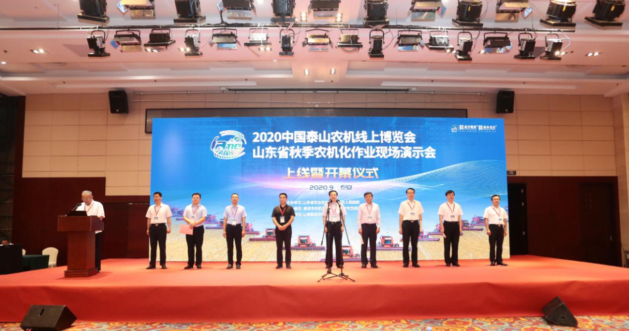 9月10日上午, 2020中國泰山農機線上博覽會暨全省秋季農機化作業現場演示會開幕。山東省農業農村廳黨組副書記、副廳長卜祥聯同志,山東省農業機械技術推廣站副站長李易同志,泰安市委副書記曲鋒同志,泰安市政府副市長鞠向群同志,市委副秘書長范福順同志,市政府副秘書長李勇同志,泰安市農業機械發展中心主任苗明峻同志,岱岳區委副書記、區長王長勇同志,泰安市商務局四級調研員高傳波同志,泰安市貿促會黨組成員、四級調研員侯汝群同志出席開幕式。