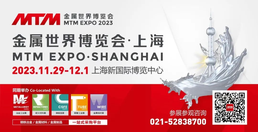 時隔兩年,鋼鐵冶金行業盛會 ——2023MTM金屬世界博覽會回歸上海,將于11月29日至12月1日上海新國際博覽中心隆重召開。