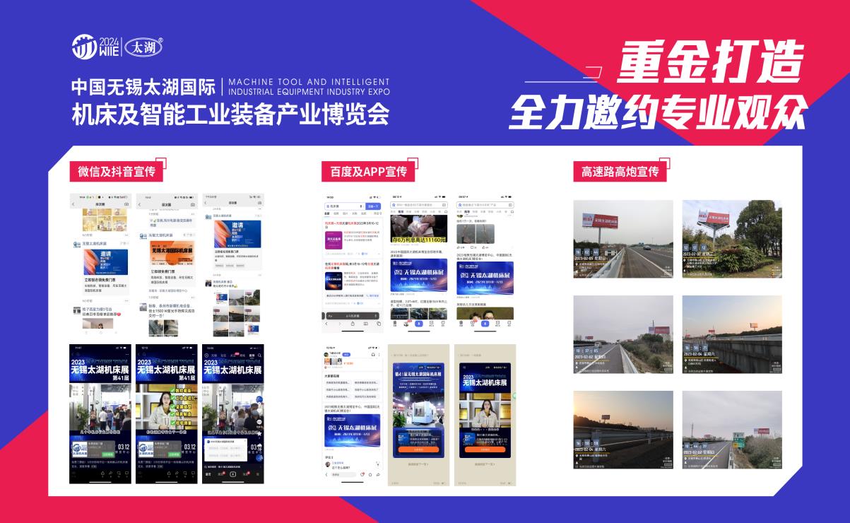 線下宣傳同樣不遺余力,在無錫周邊高速公路及市區主干道設置高速高炮廣告、宣傳橫幅、噴繪廣告、空飄氣球廣告、出租車公交車身廣告等戶外廣告,全面覆蓋重點場所。同時,在《金屬加工世界》《機床與裝備》《CNC刀具世界》《機床工具制造業》等 50 多家專業媒體雜志,以及《中國機床商務網》《中國金屬加工在線網》《機電在線》等 500 多家專業網站媒體、微博、獨立強大的觀眾微信平臺等進行定時推廣,并借助無錫電視臺、無錫廣播電臺等大眾媒體進行密集宣傳。通過線上線下緊密結合的宣傳方式,形成全方位、高覆蓋、高精度的宣傳矩陣,確保展會信息精準觸達目標群體,吸引更多專業觀眾和潛在客戶。